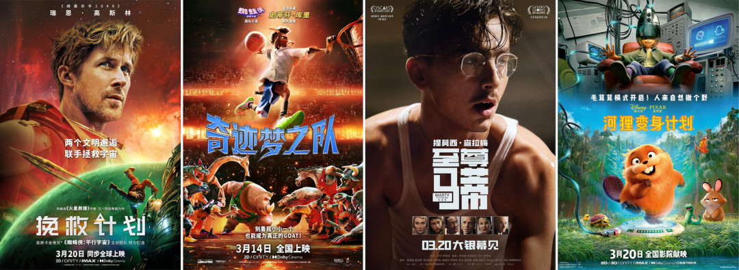 3月20日与北美同步上映的科幻电影《挽救计划》讲述太阳面临危机,一名宇航员在浩瀚宇宙中与外星伙伴携手拯救地球的故事,截至目前国内票房已达1.58亿。此外,《河狸变身计划》《非穷尽列举》《至尊马蒂》《奇迹梦之队》等影片也持续受到市场关注,共同丰富了银幕供给。