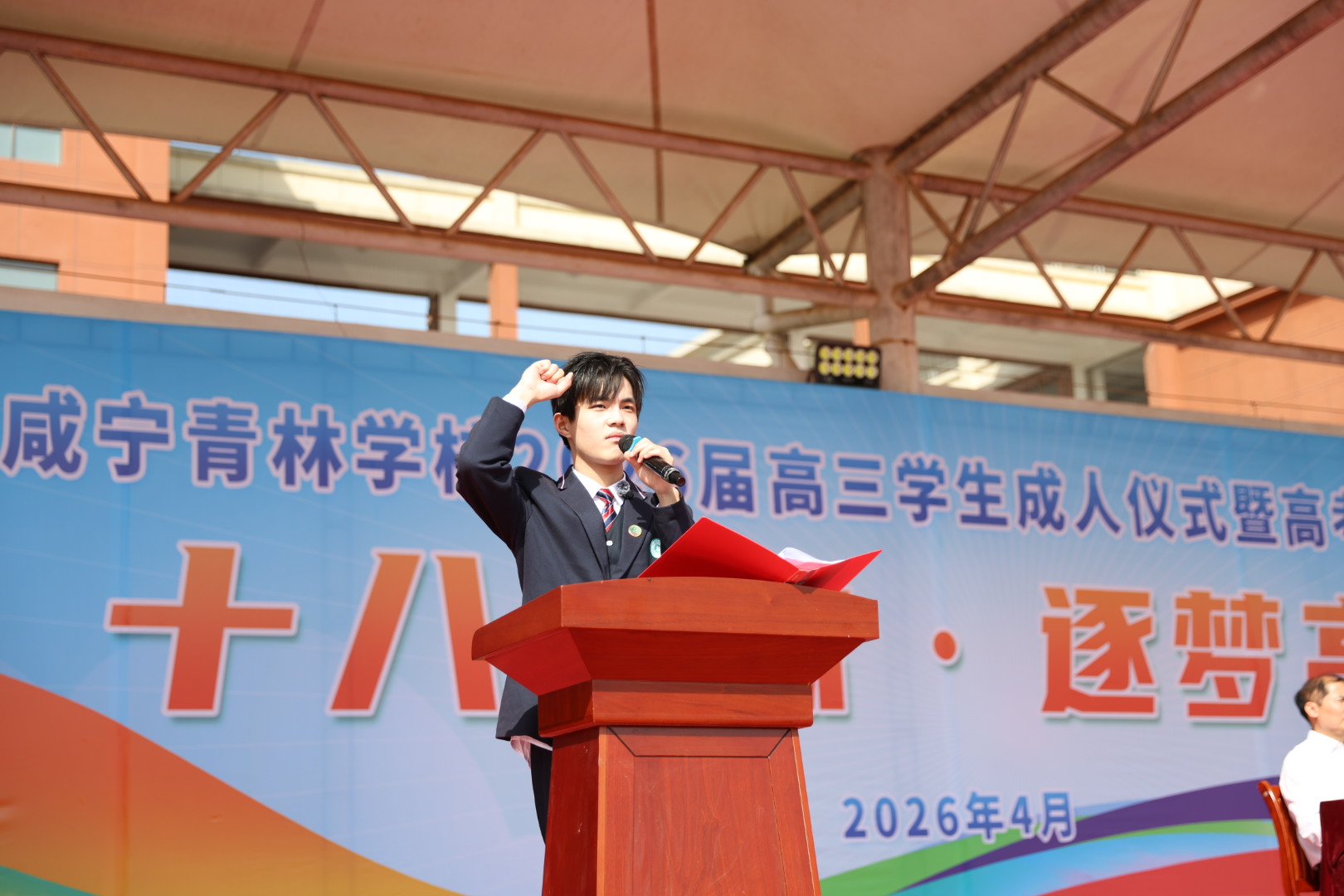 云上咸宁报道(记者 徐春梅 郑星)4月4日上午,咸宁青林学校举行2026届高三成人礼,以“青春、责任、感恩、成长”为主题,全体高三师生及家长齐聚校园,共同见证青年学子告别青涩、迈向成年的重要时刻,为他们开启人生新征程送上期许与祝福。