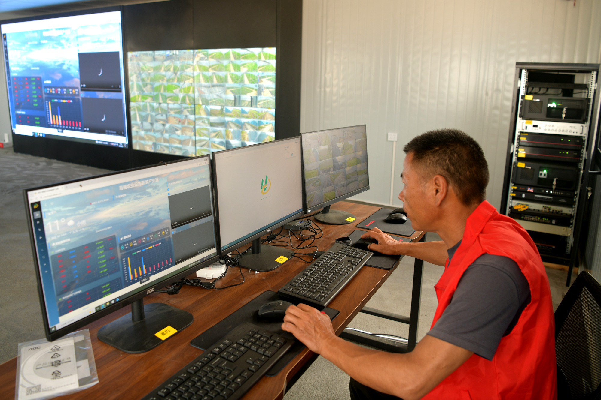 脸色黝黑的山东寿光蔬菜专家王寿福带着一帮技术员盯着电子屏幕上的数据,观察大棚蔬菜生长情况。