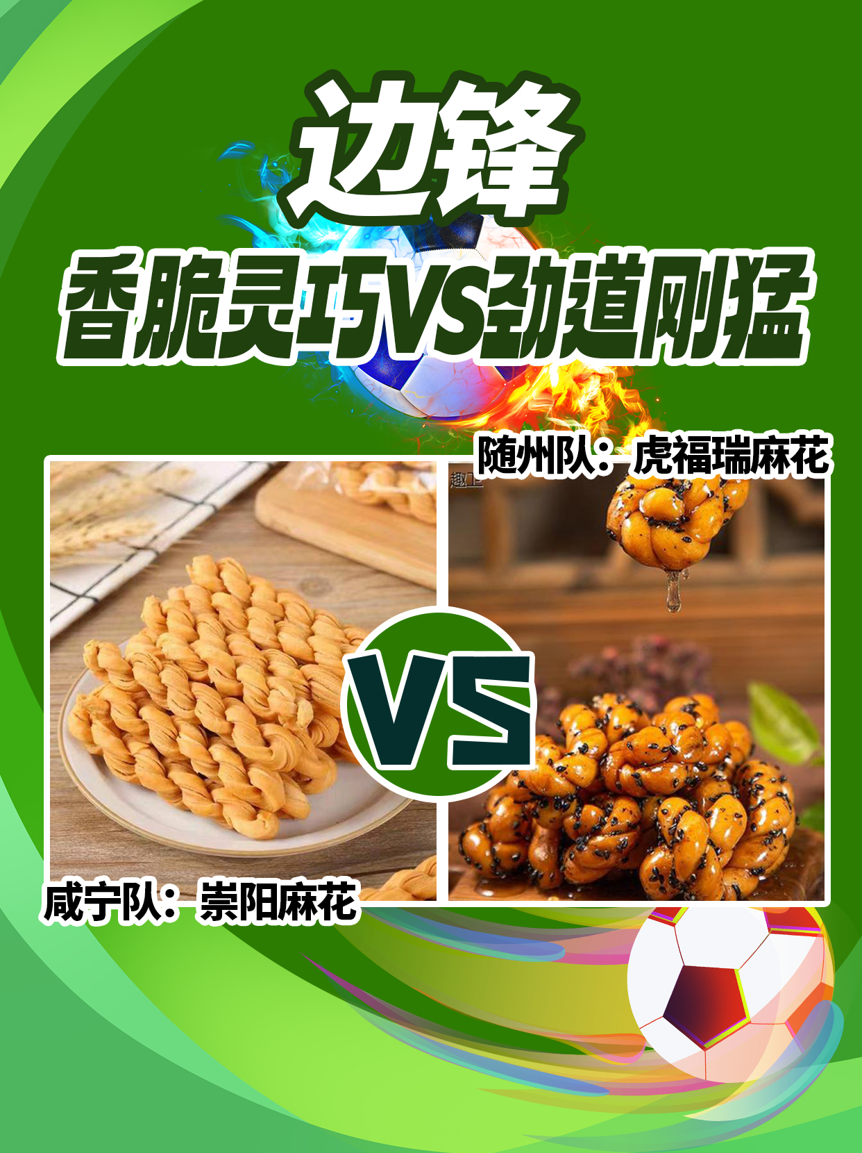 对位看点:香脆灵巧对劲道刚猛,崇阳麻花以巧破局,虎福瑞麻花以力开路。两大特色麻花边路狂飙,谁能凭借速度与变化,频频制造杀机、助攻破门?