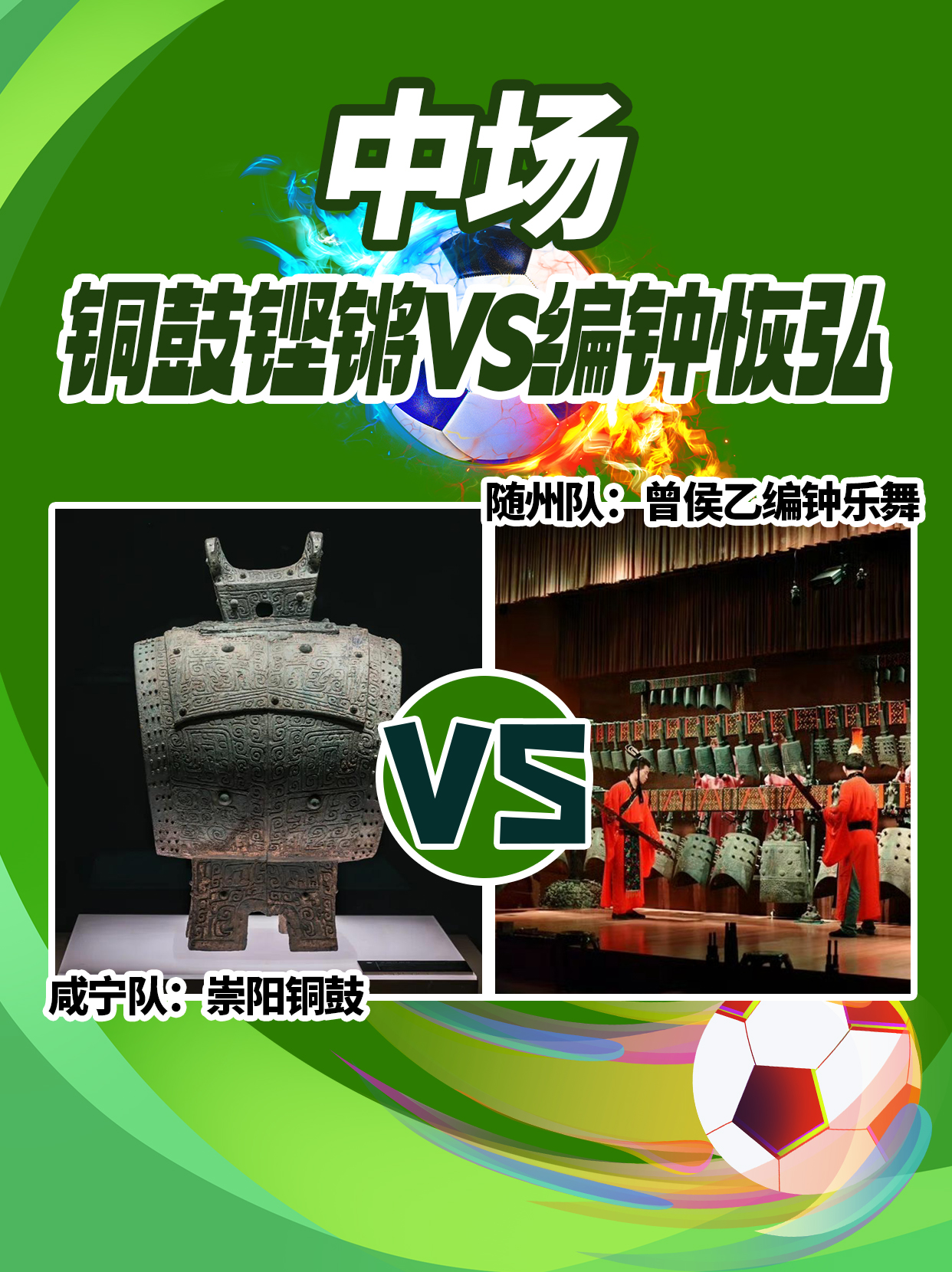 对位看点:铜鼓铿锵对编钟恢弘,崇阳铜鼓展雄浑霸气,曾侯乙编钟显儒雅风骨,中场巅峰碰撞,谁能主导攻防、主宰比赛走向?