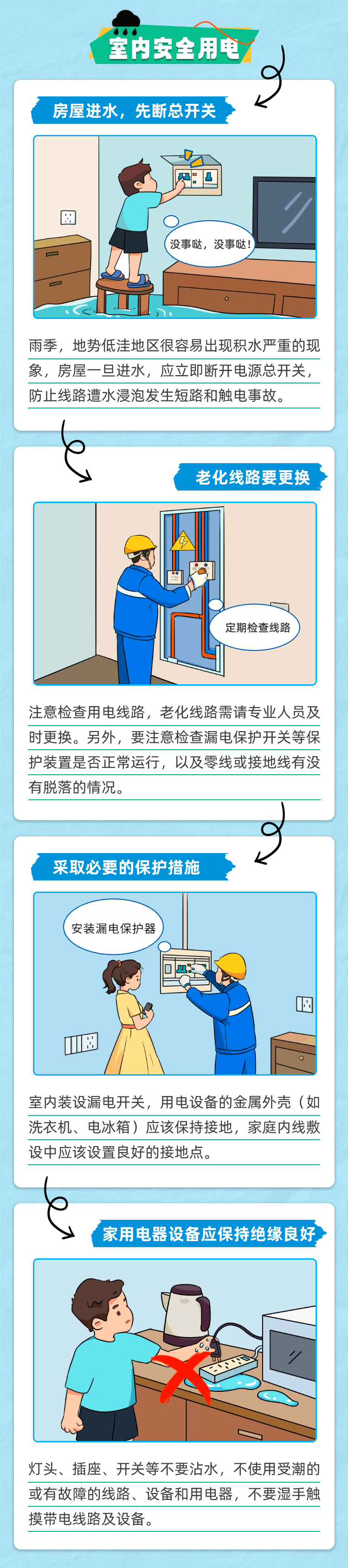 这两天 湖北到处都是雨雨雨雨 潮湿的环境下 特别要注意#防触电# 这里有一份雨天安全用电提示 赶快“码住” 掌握用电常识 避免发生意外 来源:湖北应急管理微信公众号 一审:刘雕 二审:陈玲 终审:汪洋 展开 下载云上咸宁APP阅读更多精彩内容