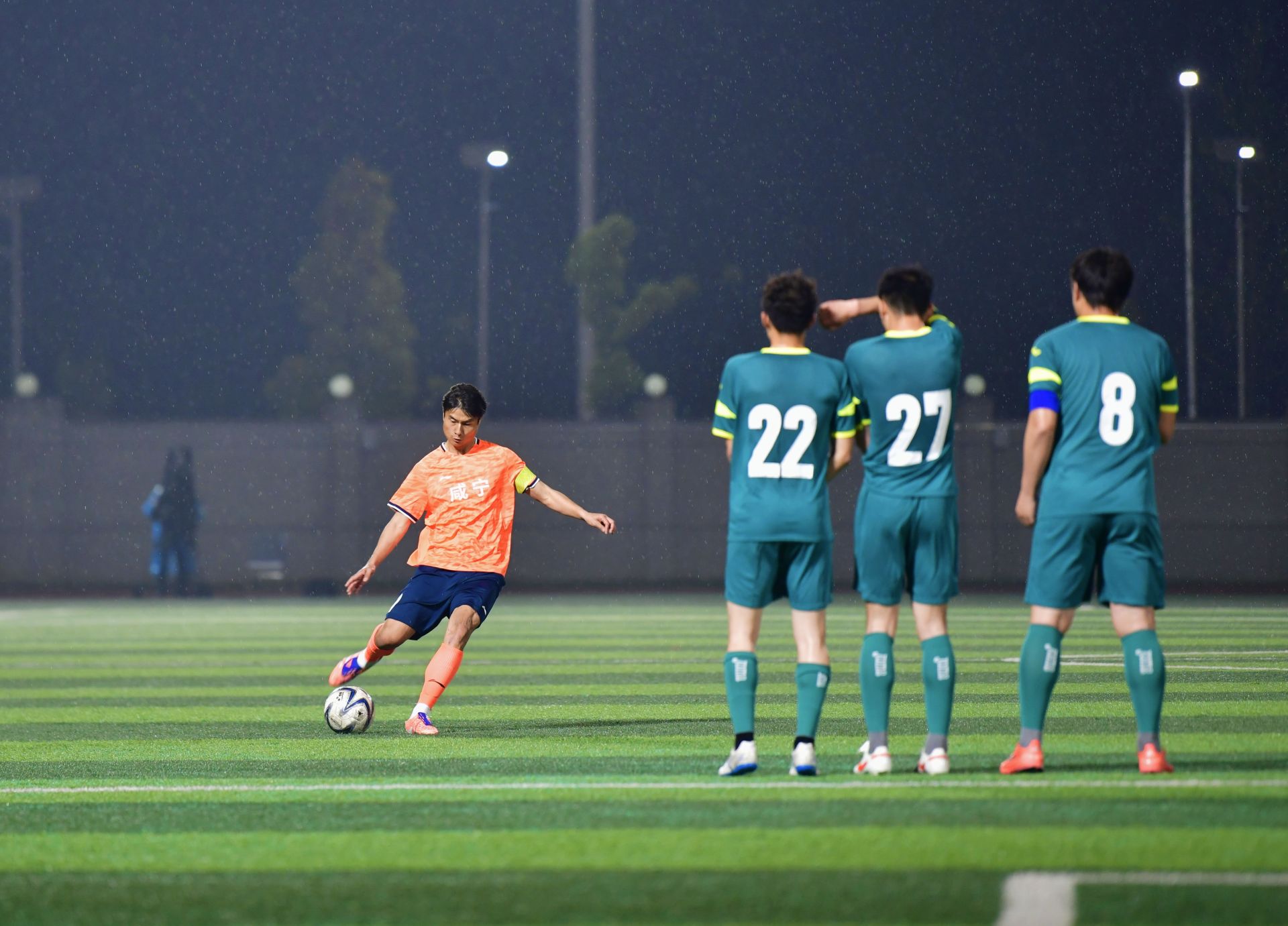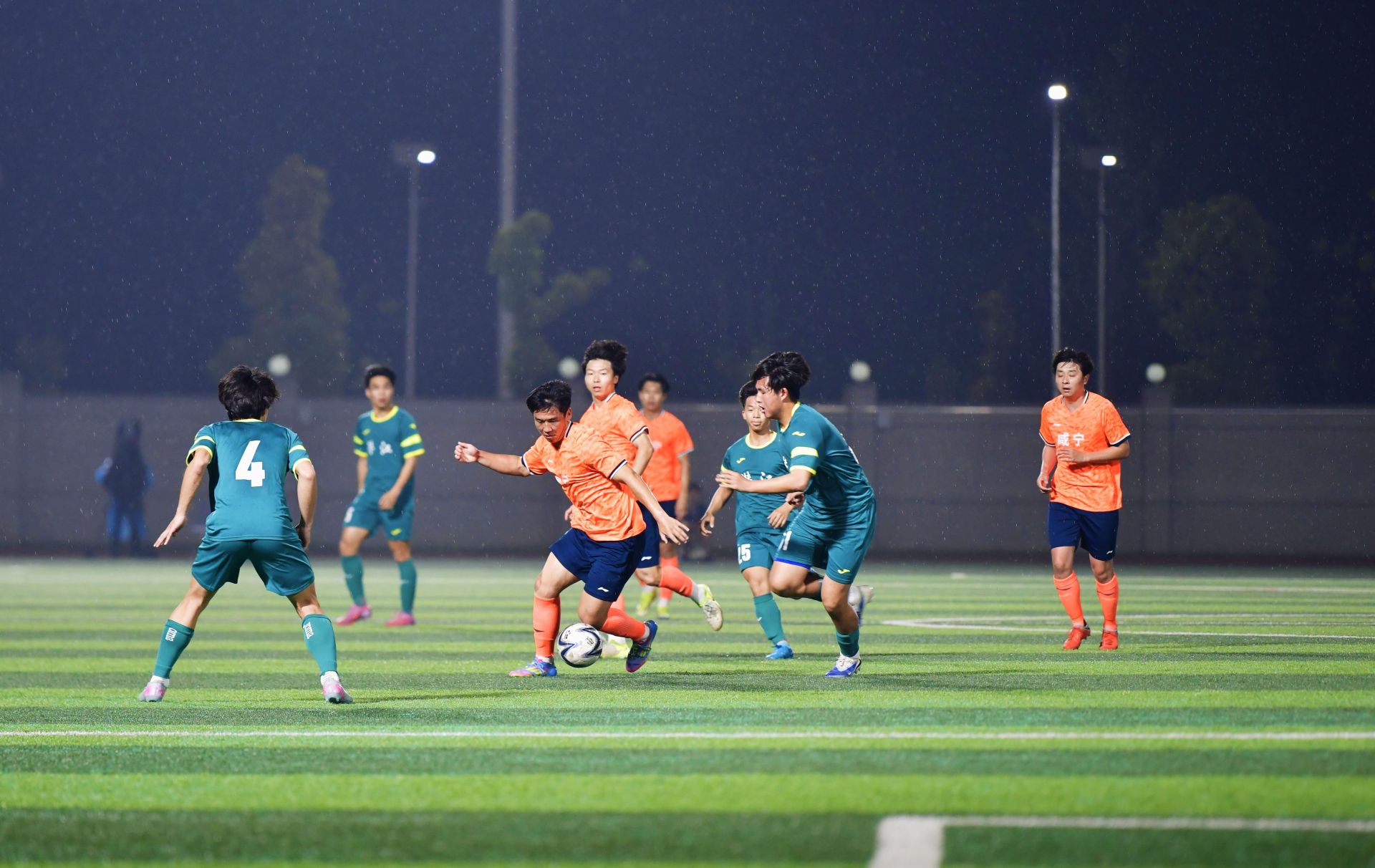 下半场易边再战,潜江队虽奋力反扑,多次尝试远射和定位球,但咸宁防线稳扎稳打。第75分钟,16号——43岁的老将冯佳门前补射入门。终场哨响,比分定格在4:0。