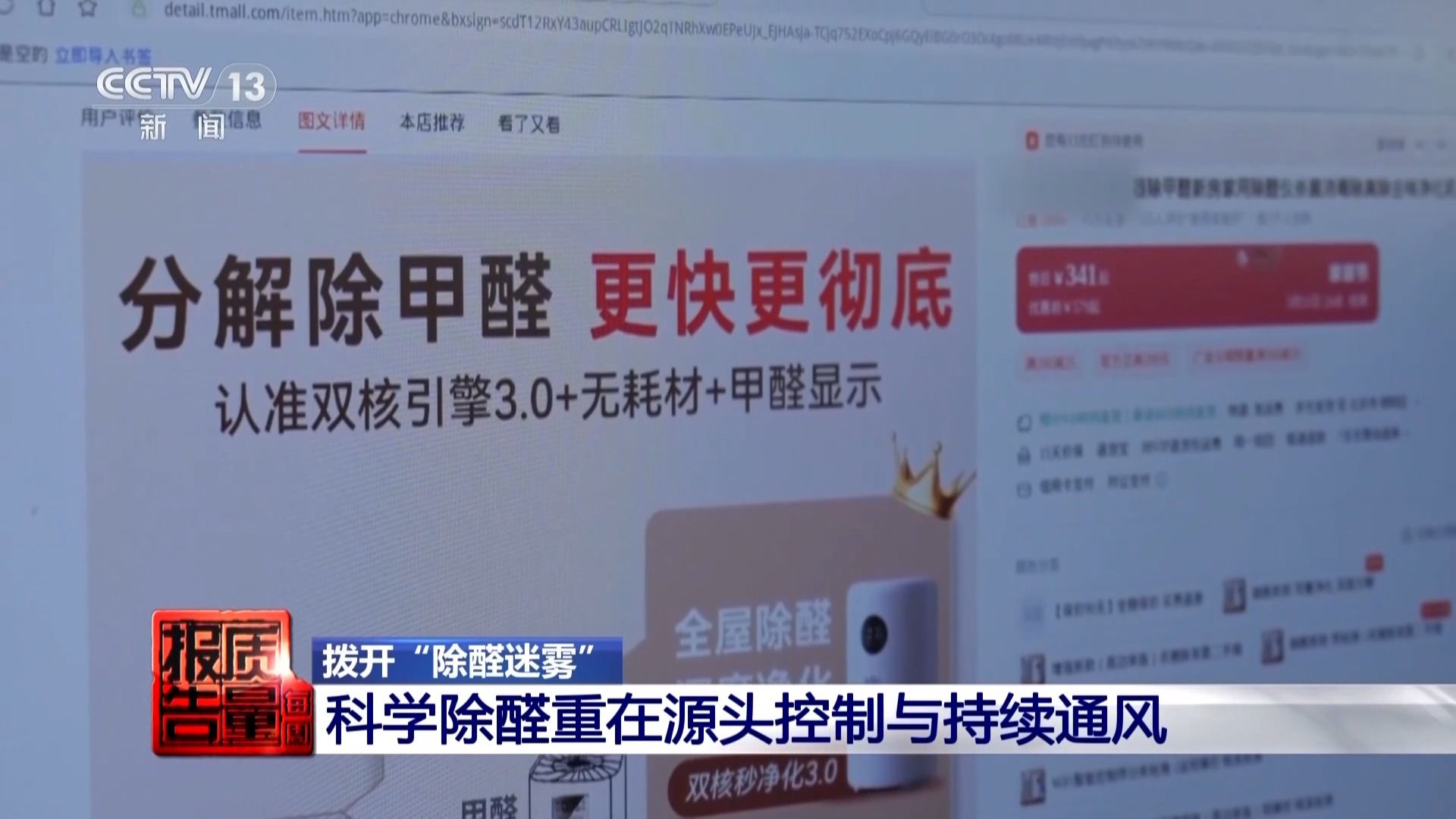 北京市消费者协会秘书长 张明辉:目前多数企业及平台已开始自查整改,规范宣传内容及数据披露,包括配合三地消协组织制定并发布除醛果冻及除醛仪产品宣称规范及平台审核指引,制作电商详情页宣传模板,推动除醛产品宣传向透明真实方向转变。