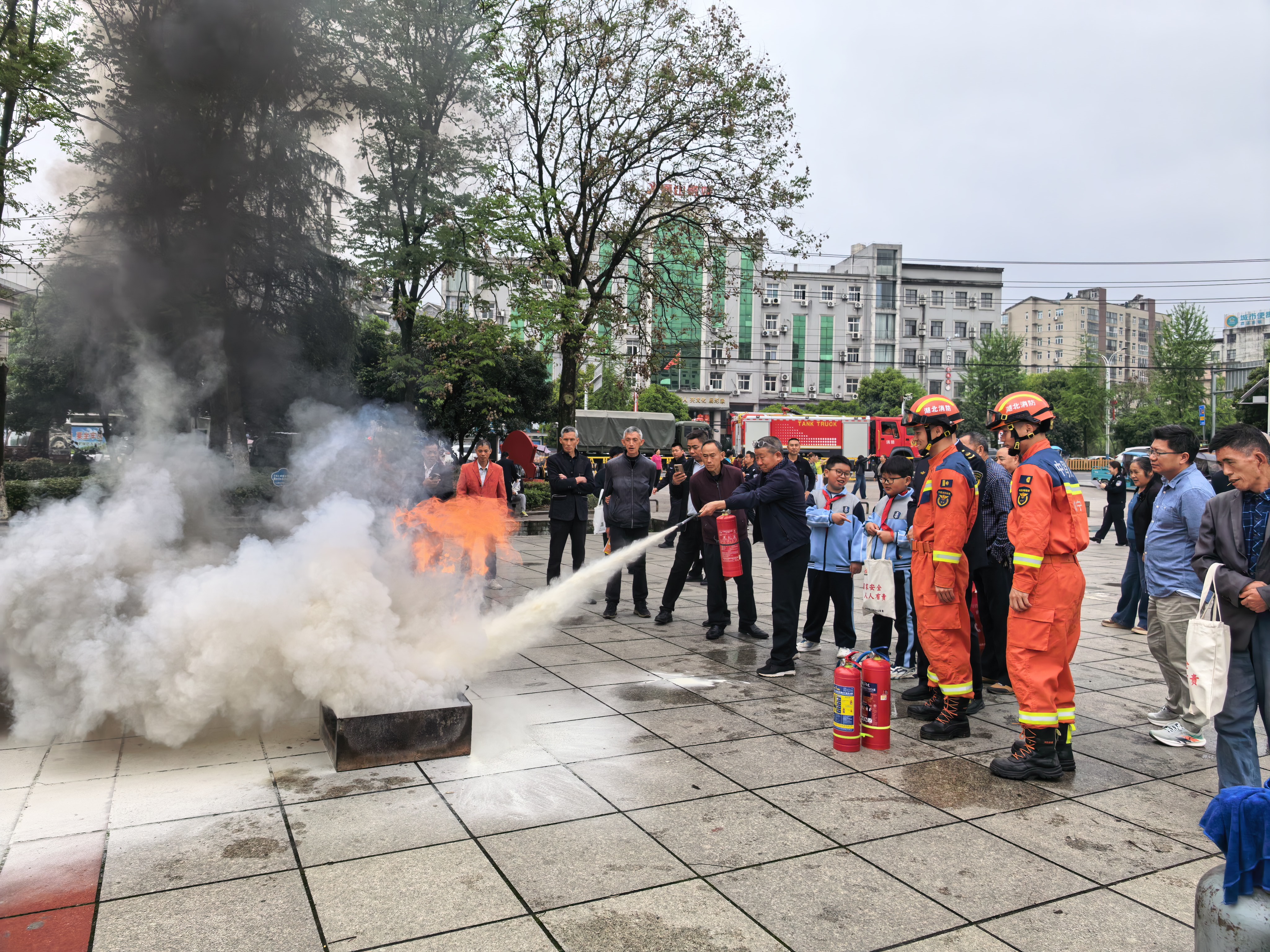 同时,咸宁消防充分利用辖区户外LED显示屏,滚动播放消防安全提示语、公益宣传片和警示教育片,在主要街道、小区出入口、商场超市等场所营造浓厚的宣传教育氛围,让“国家安全、消防安全”理念深入人心。