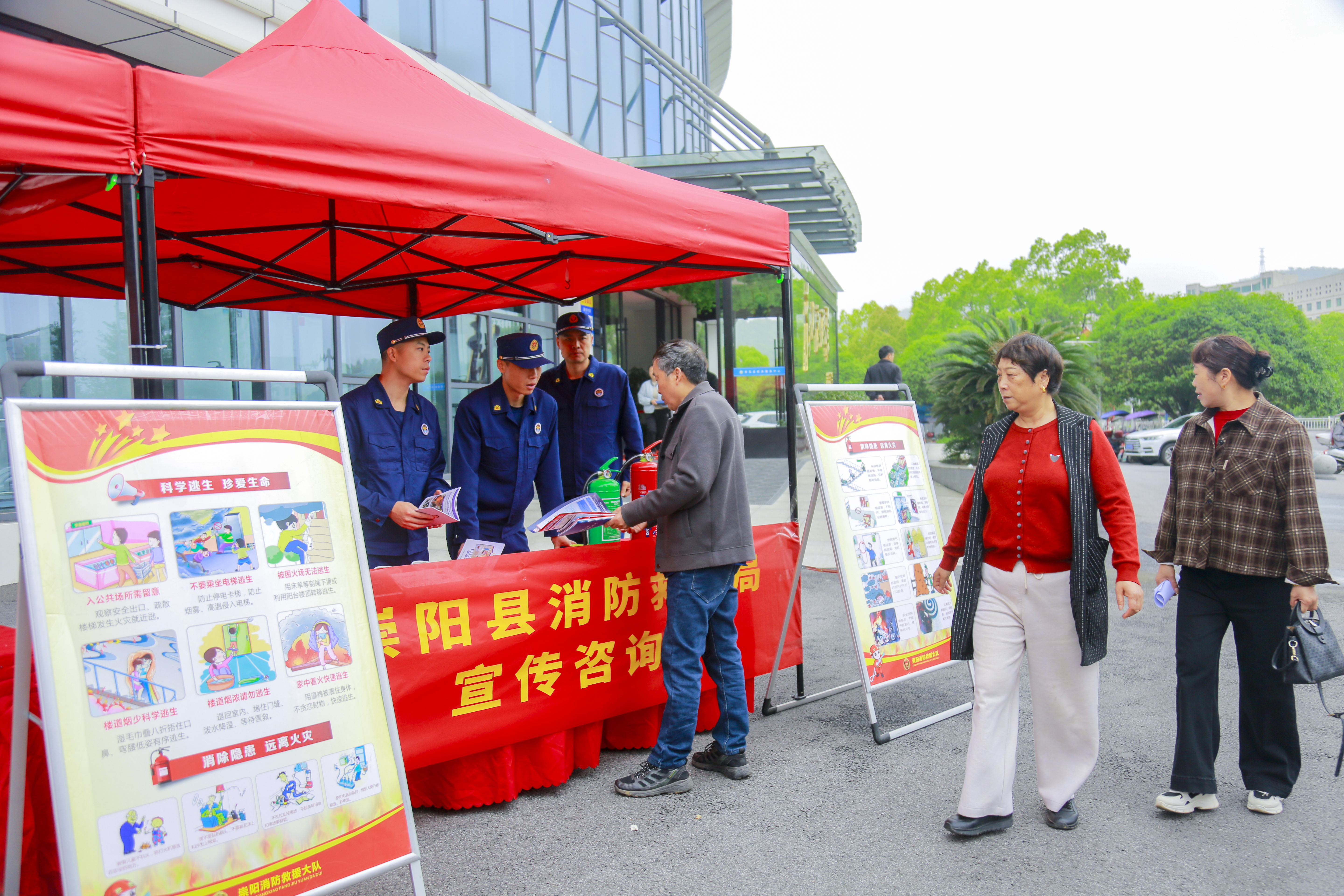 在崇阳政务服务中心活动现场,“火焰蓝”宣教队向过往群众发放《家庭防火常识》《电动自行车安全使用指南》等宣传资料,结合春季火灾特点和家庭常见火灾隐患,面对面讲解用火用电用气安全、易燃物清理、疏散通道畅通等实用知识。“家里厨房油锅起火可以用水浇吗?”“油锅起火千万不能用水浇,会引发飞溅伤人,要立即关闭燃气,盖上锅盖或用湿抹布覆盖窒息灭火。”现场一位阿姨表示“消防安全知识得学习,万一哪天起火了可了不得!”