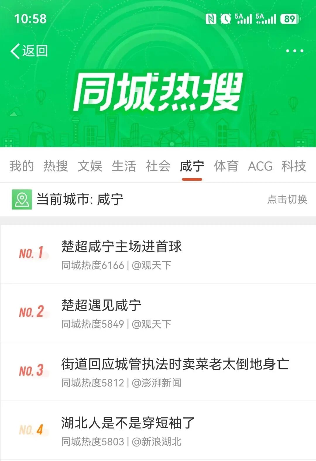 尤其值得关注的是,咸宁队主场打入首粒进球瞬间,运营团队紧跟热搜趋势,实时推出“楚超咸宁主场进首球”关键词,精准捕捉赛事热点,斩获同城热度6626,登顶微博同城热搜榜首;“楚超遇见咸宁”以 5849 热度稳居第二,两大话题形成霸榜之势。