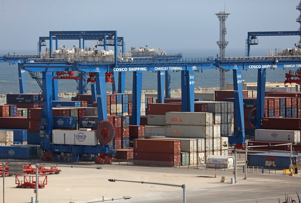 这是2025年10月7日拍摄的秘鲁钱凯港码头摆放的集装箱。新华社发(玛丽安娜·巴索摄)