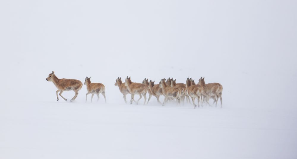 这是西藏羌塘国家级自然保护区管护员们2026年4月9日在巡护途中遇到的藏羚羊。新华社发(格桑伦珠 摄)