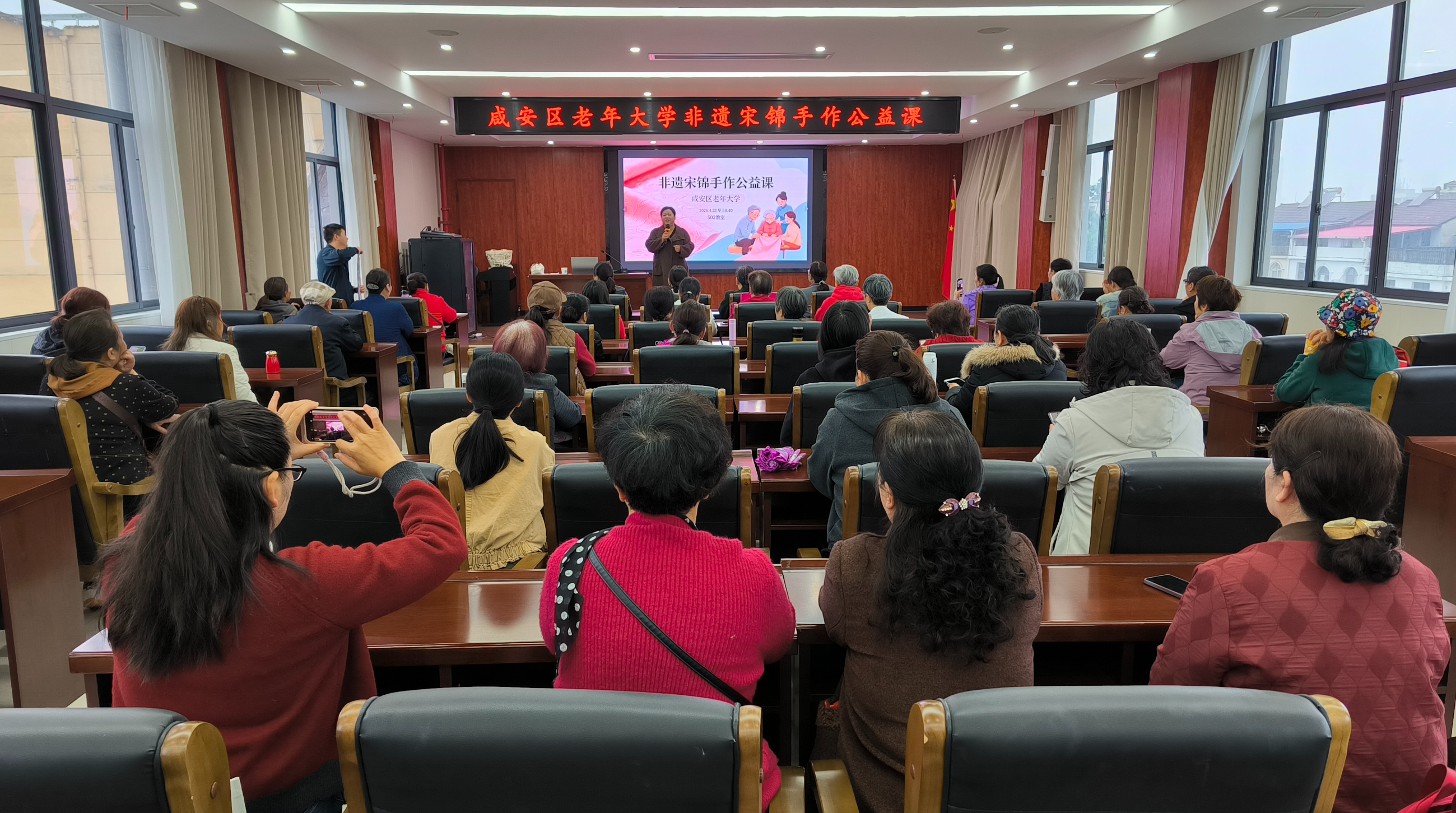 云上咸宁报道(记者 李卫东 通讯员 钟洲 宋颖)4月22日,咸安区老年大学首次非遗手作公益课正式开课,近50名银发学员齐聚一堂,沉浸式体验传统手工艺魅力,在指尖流转间感受非遗文化的独特韵味,开启一场老有所学、老有所乐的文化之旅。