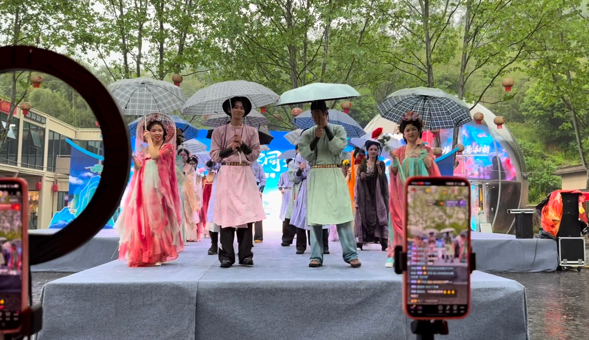 云上咸宁报道(记者 刘丽松 通讯员 万镇)春雨绵绵,巾帼步履不停。4月21日,在咸安区妇联精心指导下,咸安区“村播妇联”走进太乙洞景区,开展“巾帼助力五一文旅”专场直播推介活动。尽管天空飘着绵绵细雨,一群撑着伞、举着手机的身影穿梭在洞前廊道和山径之间,用她们特有的“她力量”为即将到来的五一长假景区活动预热造势。