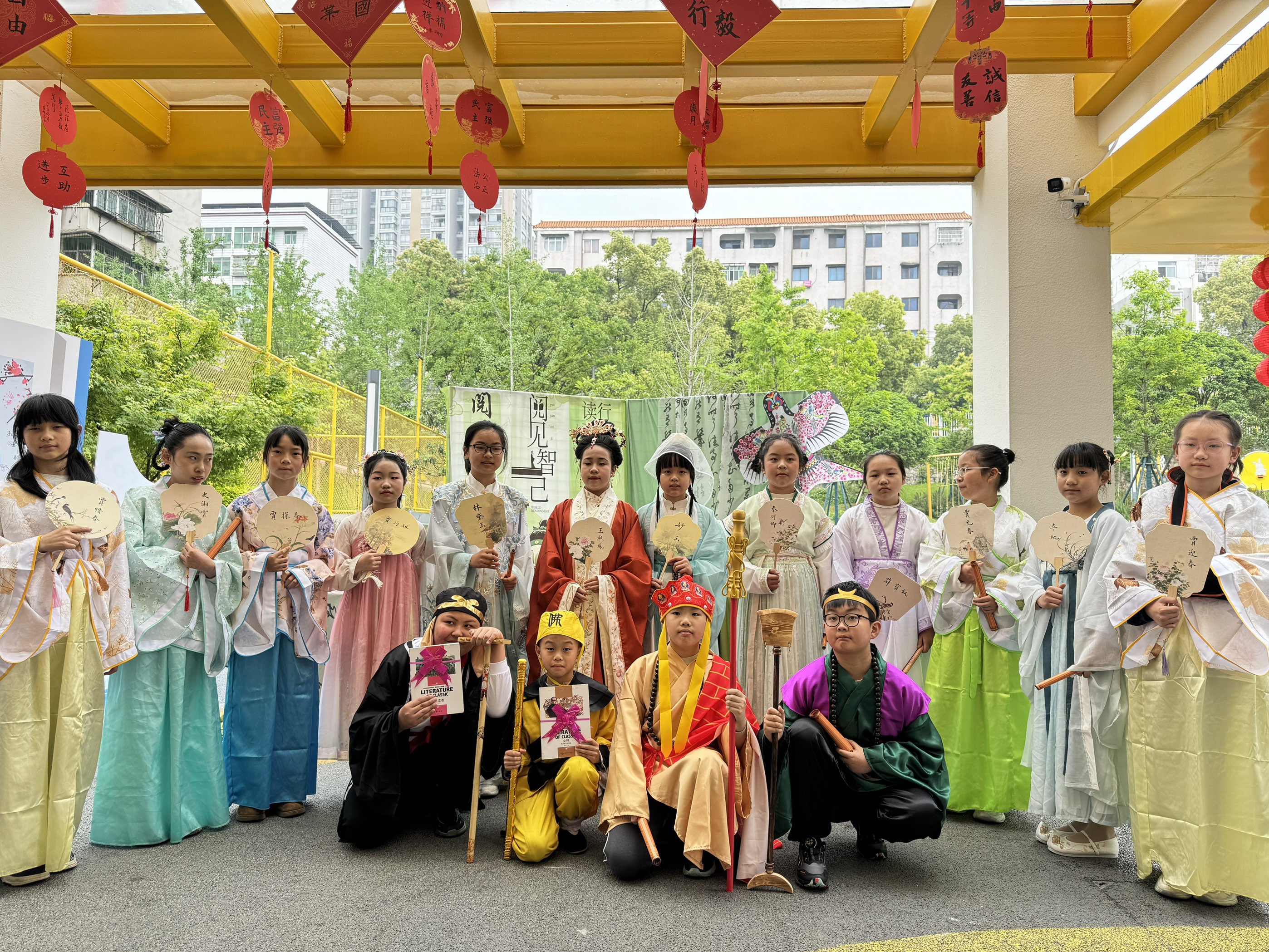活动现场表彰“好书推荐官”与“书香家庭”,家长代表分享家庭阅读心得,营造家校协同育人氛围。据介绍,此次活动融合汉服文化、名著演绎与经典诵读等元素,丰富了校园文化内涵,有效激发学生阅读兴趣,推动书香校园建设持续走深走实。