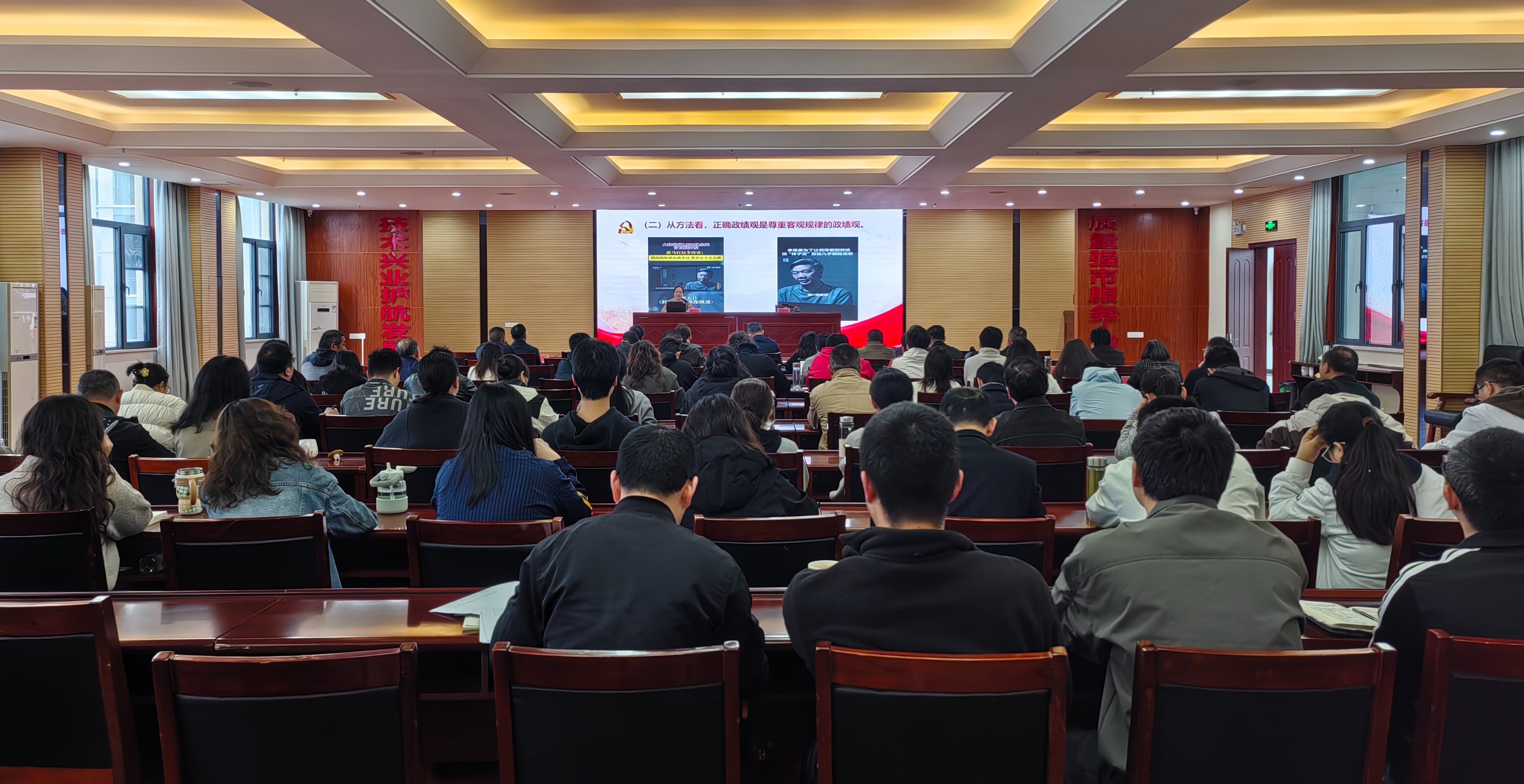 会上,市委宣讲团成员、市委党校学员组织处主任、四级调研员朱芳芳作题为《牢固树立和践行正确政绩观》的专题宣讲。她从深刻理解“正确政绩观”的科学内涵、当前“政绩观错位”的主要表现及原因、准确把握新时代政绩观的实践路径三个方面进行阐述。宣讲通过理论解读、案例剖析、正反对照相结合的方式,深入剖析政绩观错位偏差的具体表现与危害,引导全体干部职工深刻认识到:为民造福是最大政绩,必须完整、准确、全面贯彻新发展理念,坚决摒弃速度情结、规模冲动,把工作着力点放到打基础、利长远、惠民生、提质效上。