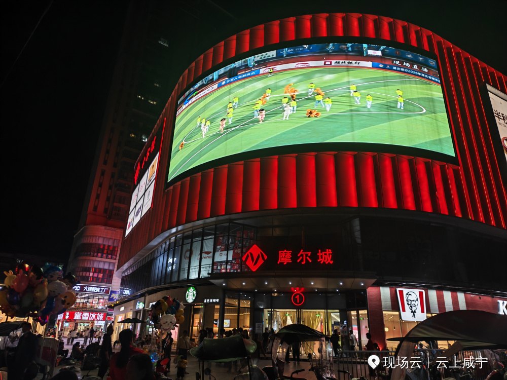 更为亮眼的是,在群众的热切期盼中,全市“第二观赛点”增至20个,体育流量被精准导流至各大商圈,吸引了15万人次参与。咸宁万达广场外LED大屏前座无虚席,推出观赛套餐、啤酒畅饮一站式优惠,当晚销售额在上周首战196万元的基础上,突破200万元大关。赤壁、嘉鱼、通山、通城、咸安……六县市区同步响应,商圈、夜市、景区全线联动。据不完全统计,两场楚超咸宁主场赛事,直接拉动消费775万元。这组数字背后,是一个个鲜活的消费场景,是整座城市被体育赛事激活的经济脉搏。