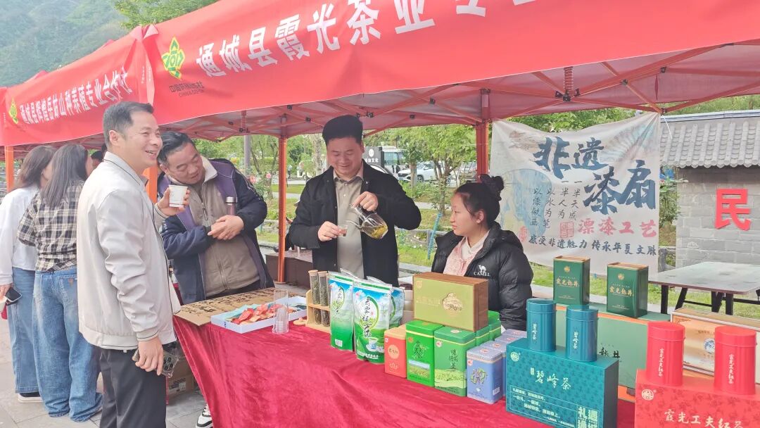 如果说直播间是线上的“烽火台”,那么遍布各县市区的 “赛事展销区” 则是线下承接流量的“蓄水池”。在通城县雁塔广场的“第二现场”,鄂湘赣三省特色农产品展销会与球赛同步开锣。霞光茶业的摊主胡博一边招呼品茶的顾客:“楚超带来了大量人流,大家一边看球一边品茶,品牌曝光度上去了,销量也实实在在增加了。”