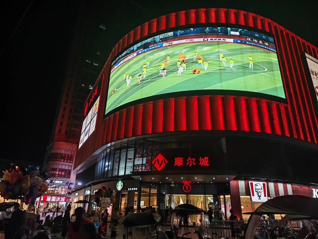 咸安万达广场外,巨型LED屏下座无虚席。勇闯天涯啤酒免费畅饮,楚超文创产品展销,餐饮企业推出专属“球迷套餐”。“不仅能免费看大屏,还有啤酒喝,这种在家门口为家乡队加油的感觉,太爽了!”家住附近的李先生道出了许多市民的心声。数据印证了这种热情:18日“楚超”咸宁首场主场比赛,万达广场日销售额突破196万元,25日迎战神农架,则突破208万元。