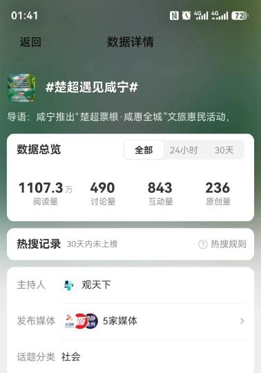 - “楚超”咸宁燃爆全网!话题热度霸榜微博 文旅惠民引爆千万流量