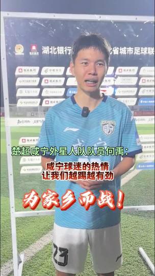 - 为家乡而战!楚超咸宁外星人队队员何禹:咸宁球迷的热情让我们越踢越有劲